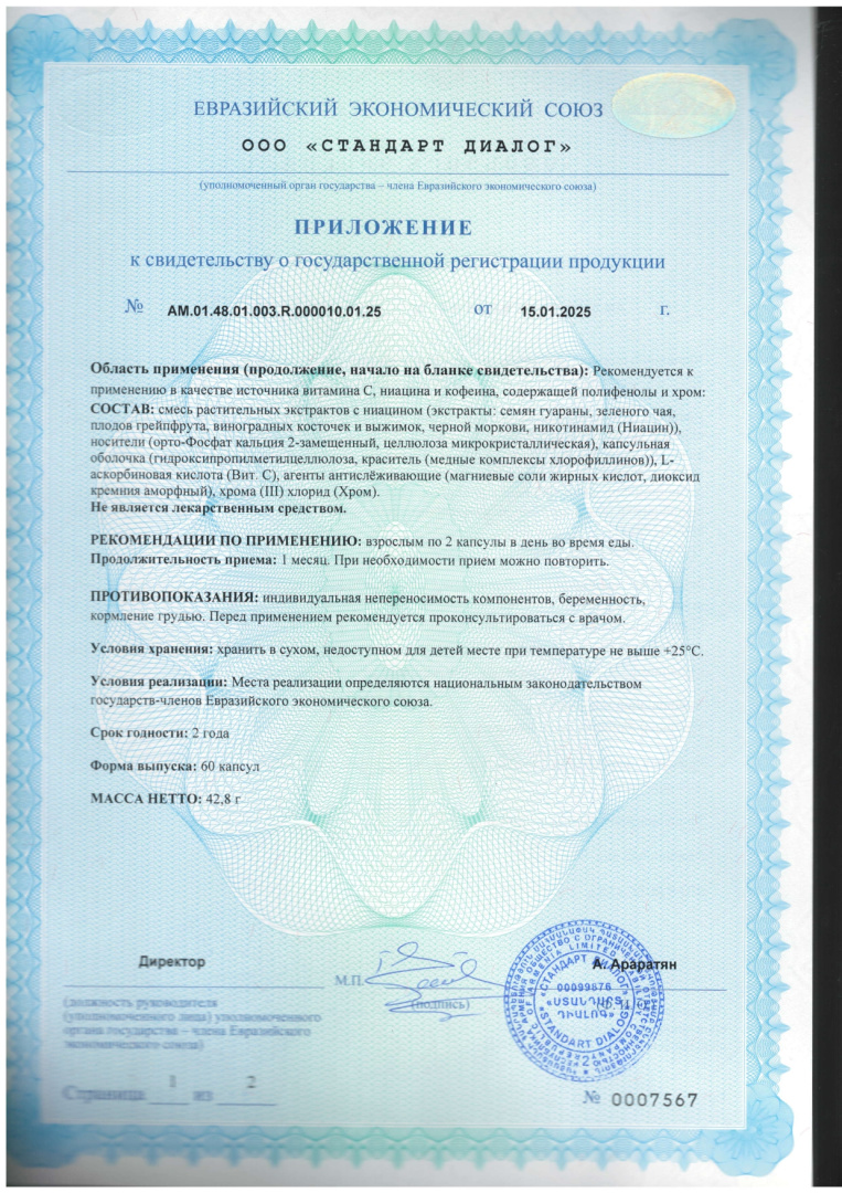 Fiit-NS™ - это инновационный бленд из растительных экстрактов зеленого чая, гуараны, грейпфрута, семян винограда и корня черной моркови, которые богаты полифенолами.