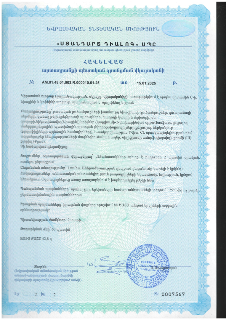 Фито комплит – это источник витамина С и ниацина, которые способствует нормальному энергетическому обмену и снижению утомляемости3. В состав продукта хром, который способствует нормальному метаболизму макроэлементов и поддержанию нормального уровня глюкозы в крови3.