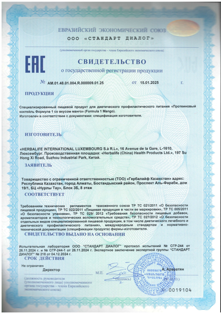Продукция разработана в собственном научном центре Herbalife и выпускается на производстве по международным стандартам качества GMP.